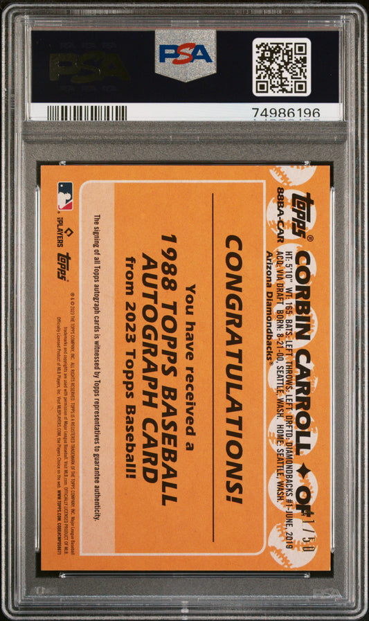 2023 1988 Topps Baseball Autographs Corbin Carroll #88BACAR Gold PSA 8Regular price $120.00 USDRegular priceUnit price per-