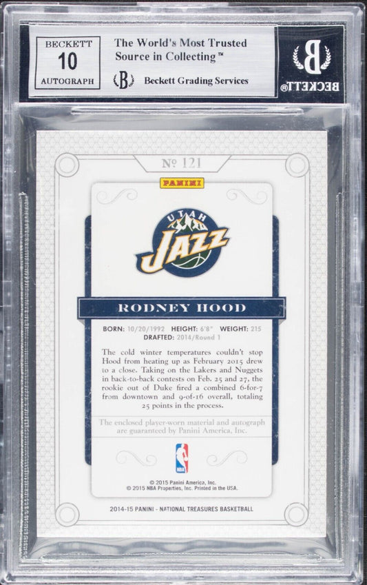 2014 National Treasures Rodney Hood #121 Rookie Patch Auto Gold BGS 9 RPA