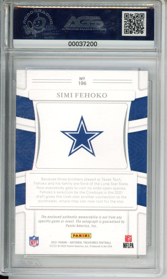 2022 Football 2021 Panini National Treasures Simi Fehoko #196 /99 RPA AGS 9