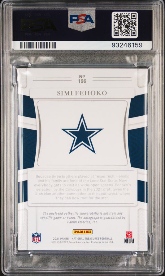 2021 Panini National Treasures Simi Fehoko #196 RPA Stars & Stripes PSA 8