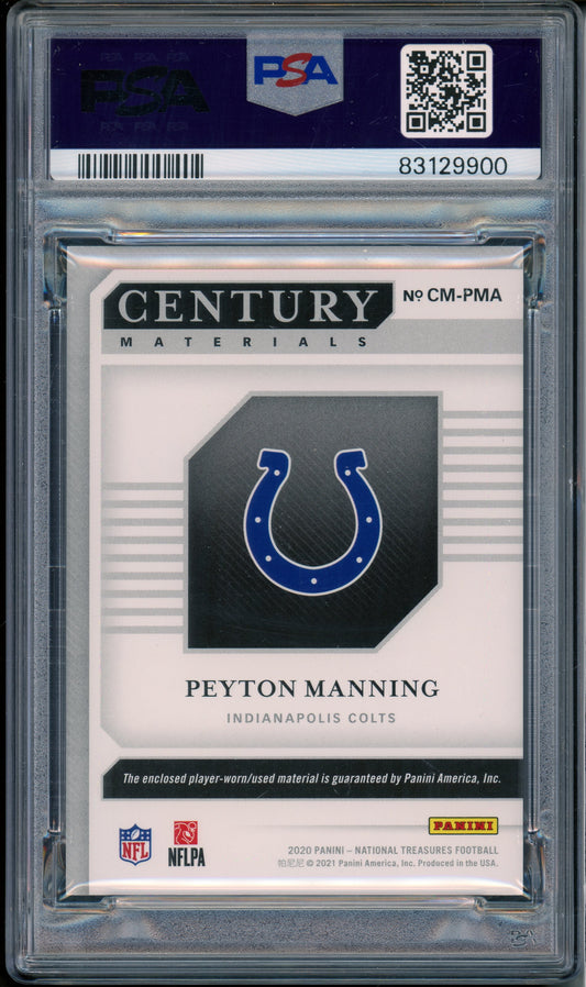 2020 Panini National Treasures Peyton Manning #PMA Century Materials PSA 8