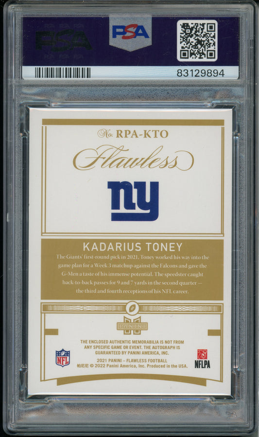 2021 Flawless Kadarius Toney #RPAKTO Rookie Patch Auto Platinum /1 PSA 10 RPA RC