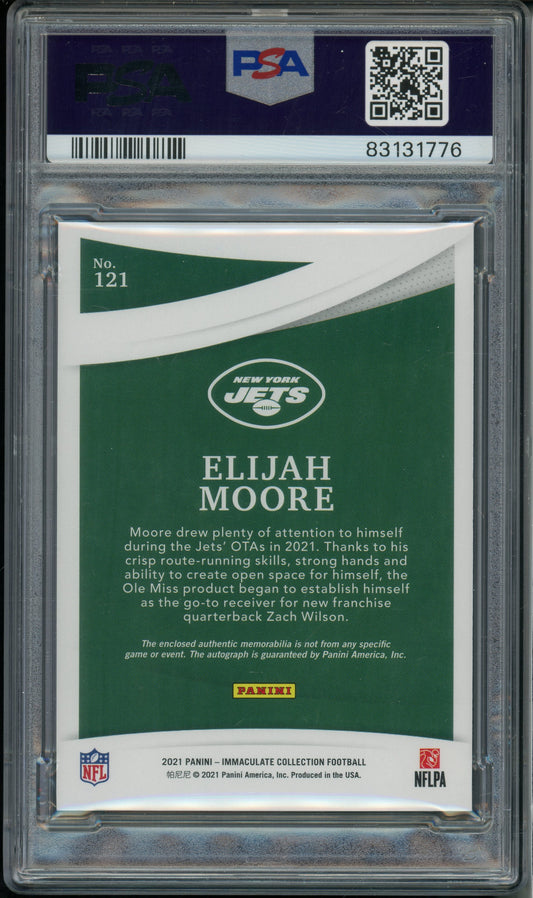 2021 Immaculate Collection Elijah Moore #121 Patch Auto NFL Shield PSA 8