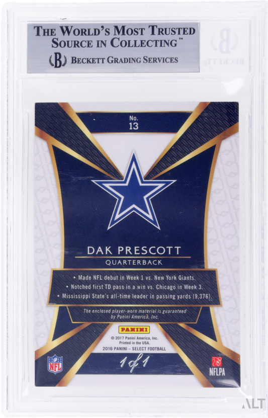 2016 Select Dak Prescott #13 Sparks Prizm Black Laundry Tag NFL Shield BGS 9