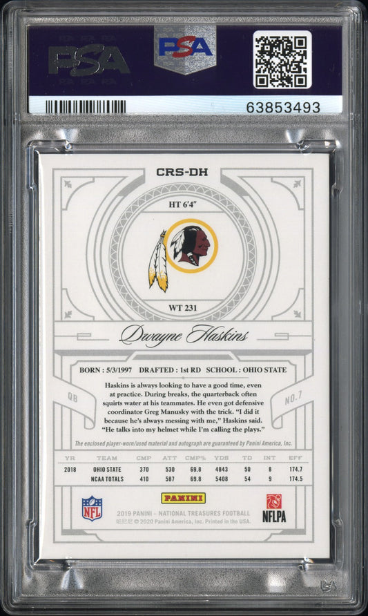 2019 National Treasures Dwayne Haskins Rookie Patch Auto NFL Shield PSA 8