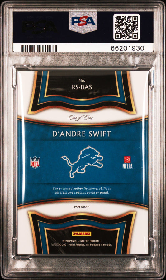 2020 Panini Select D'andre Swift #RS-DAS Rookie Swatches Prizm Black PSA 9