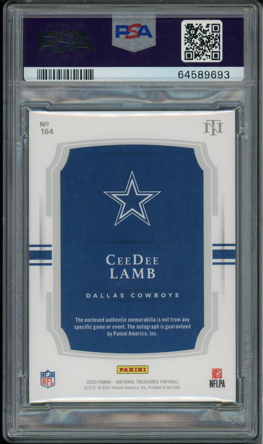 2020 Panini National Treasures Ceedee Lamb #164 Patch Autograph PSA 9
