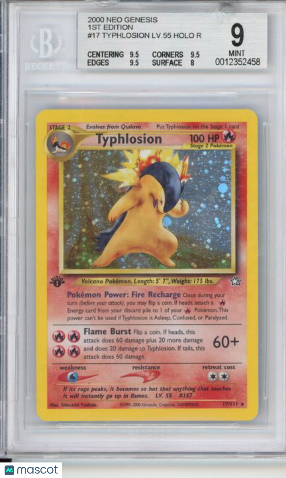 2000 Pokemon Neo Genesis 1st Edition Typhlosion Lv.55 HOLO R #17 BGS 9