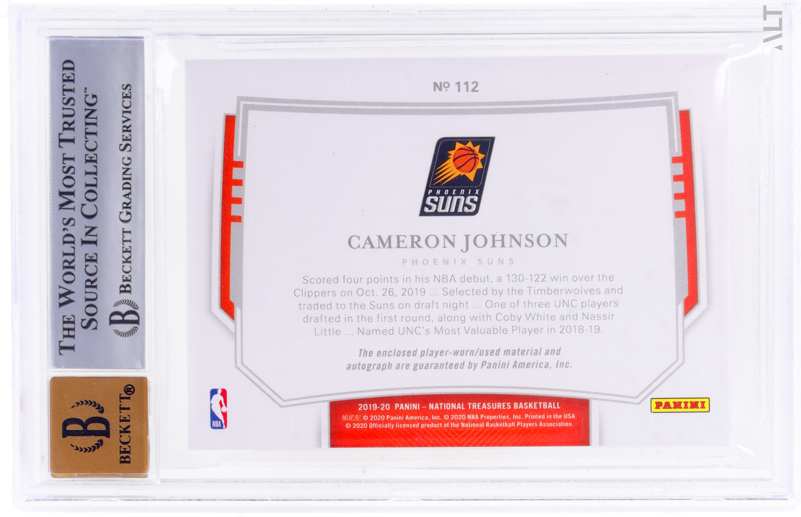 2019 National Treasures Cameron Johnson #112 Rookie Patch Auto Bronze BGS 8.5