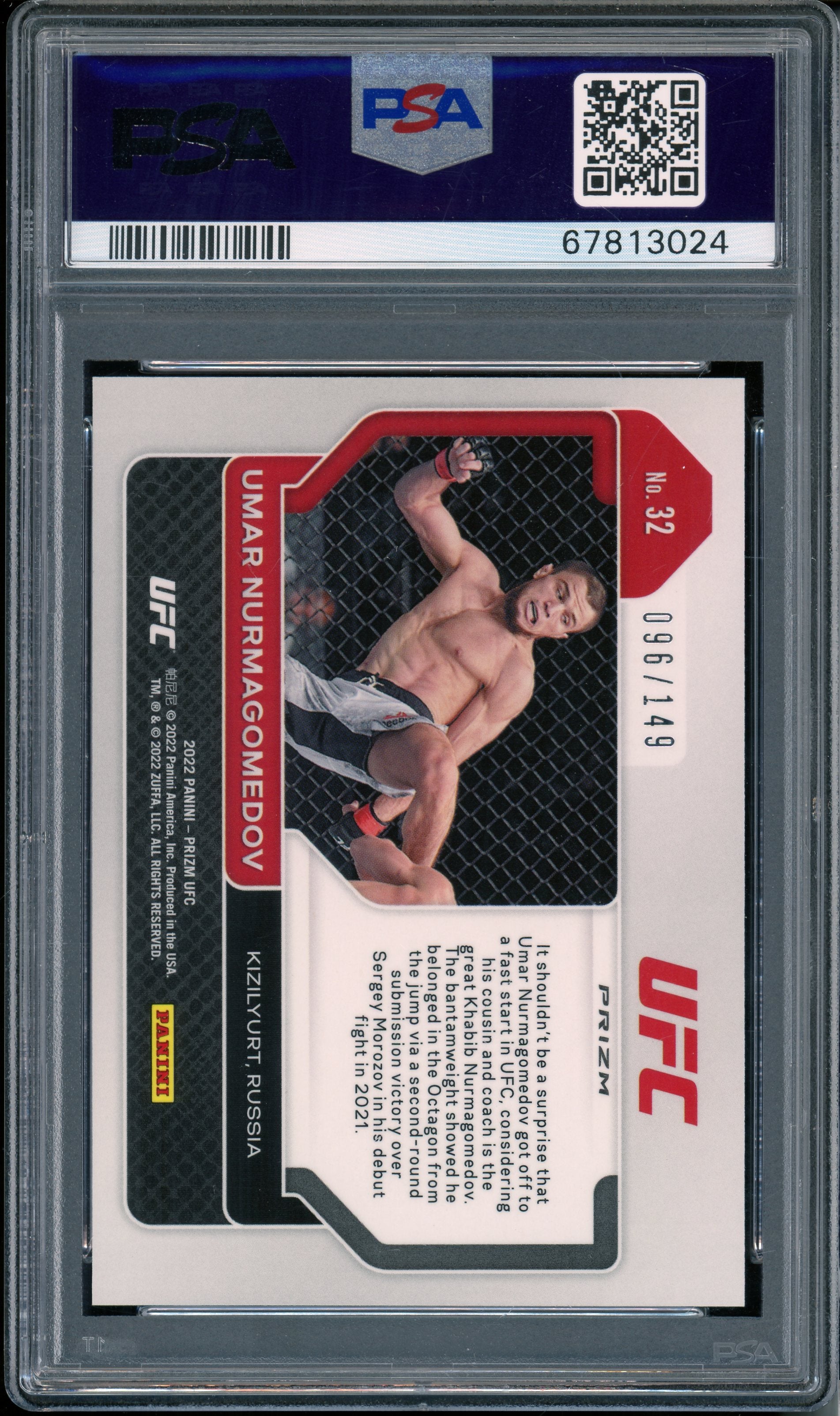 2022 Panini Prizm UFC Umar Nurmagomedov #32 Purple Prizm PSA 9