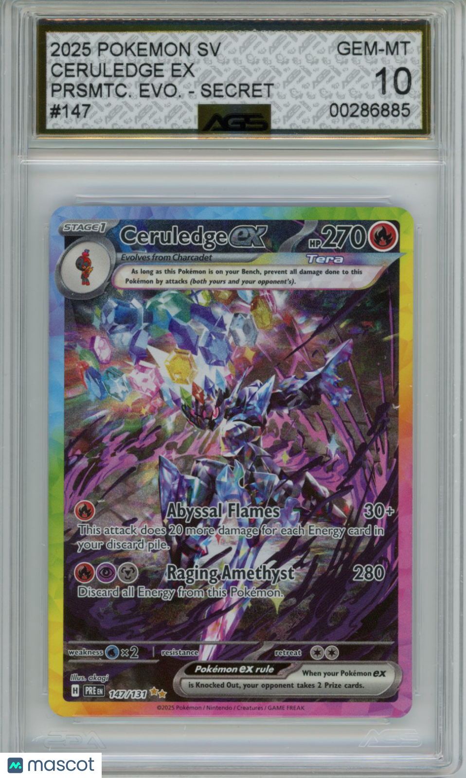 2025 Pokemon Prismatic Evolutions Ceruledge ex #147/131 AGS 10